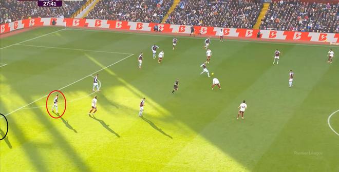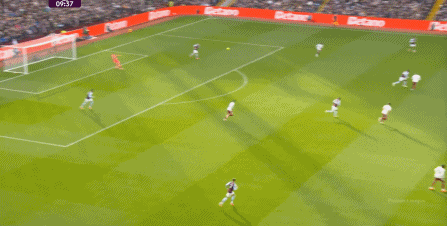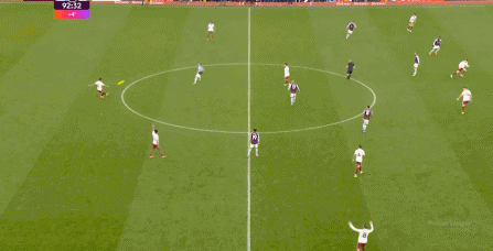 另外,阿斯顿维拉通过长传球,也能绕过逼抢和中场,直接从前场打出攻势: