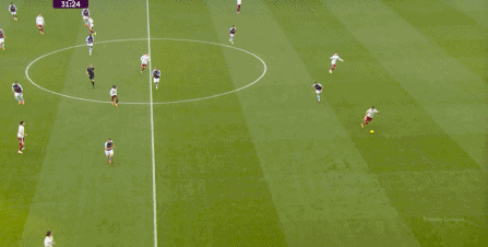 因为从这个角度来计算,你才能确定下半场加强进攻的时机点,所以下半场一上来,阿尔特塔立刻换上特罗萨德是非常正确的选择,下半场开局的威胁进攻,也全部来自这一点: