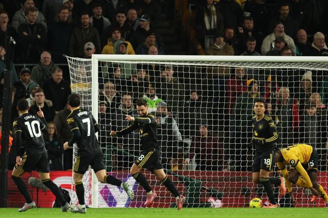 下半场易边再战。第51分钟,曼联再次进球!达洛特接到直塞球,前插获得单刀机会。他没有选择射门,而是冷静横传,姆伯莫包抄,轻松把球送进空门。第62分钟,曼联再次进球!布鲁诺-费尔南德斯送出妙传,芒特前插,单刀凌空射门,球进了!门将一点反应都没有。第80分钟,曼联获点球机会。布鲁诺-费尔南德斯主罚,他稳稳罚进,杀死比赛。最终,曼联4-1击败狼队。