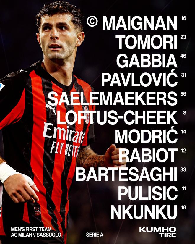 米兰vs萨索洛:普利希奇搭档恩昆库,莫德里奇、拉比奥出战