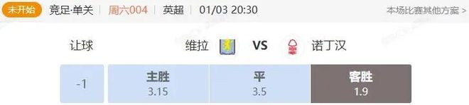 在这场比赛之前,阿斯顿维拉已经主场10连胜,这是球队近36年来最长的主场连胜战绩,但是在面对身处保级边缘挣扎的诺丁汉森林时,市场数据开得很不乐观。
