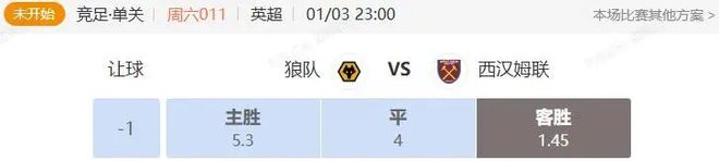 狼队和西汉姆的这场英超对决,从两队近期的竞技状态来看,西汉姆客场拿下不败的概率相当可观。